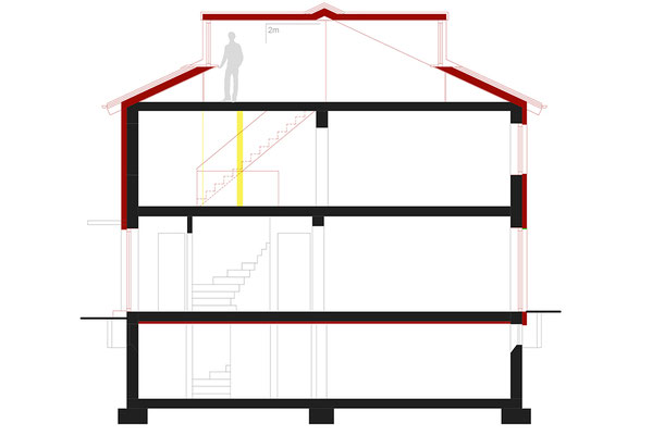 Das Dach wurde mit den zwei Dachgauben neu errichtet. Die Fenster wurden ausgetauscht und die Fassade gedämmt. Die Haustechnik wurde komplett erneuert.